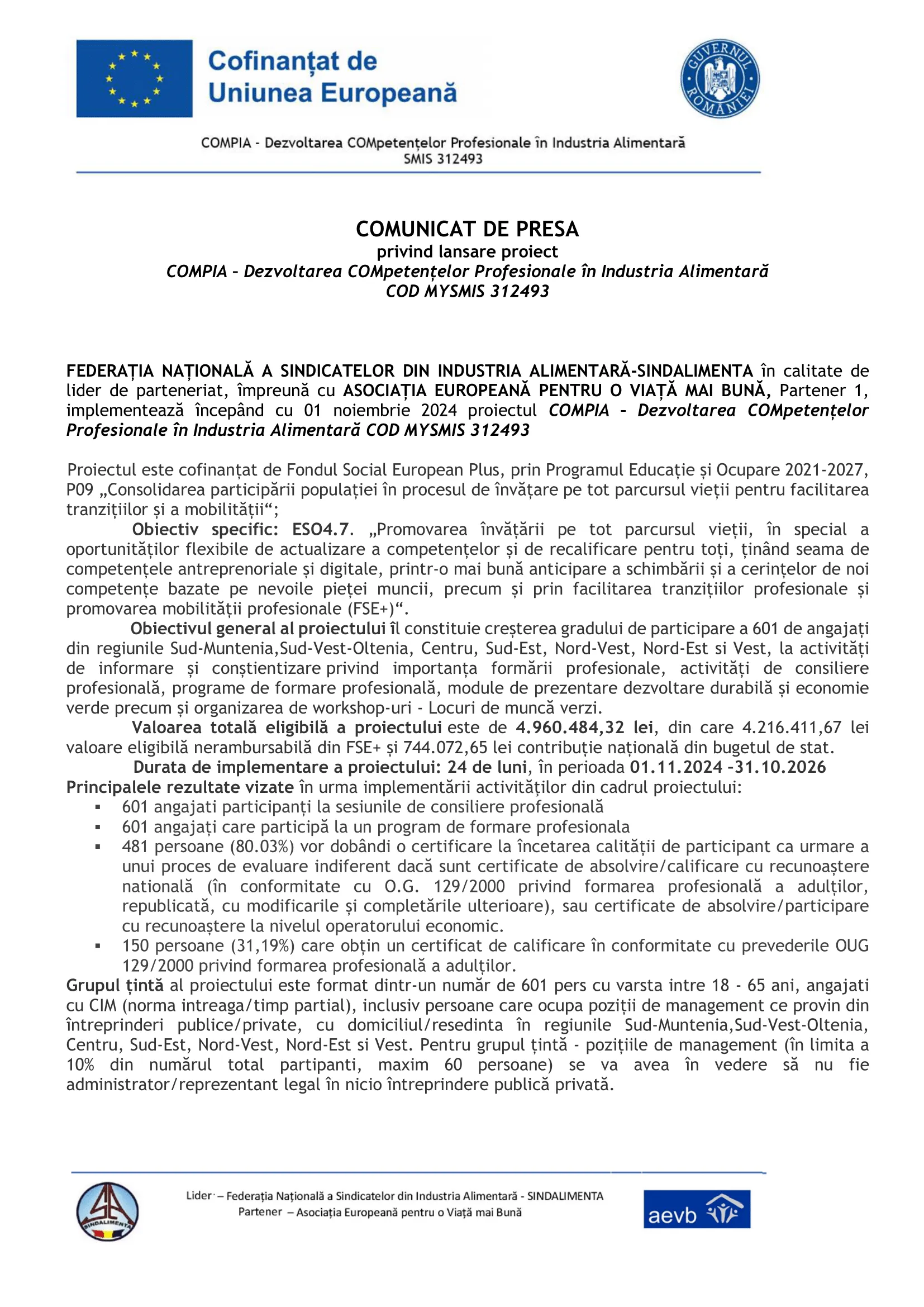 Proiect cofinanțat din Fondul Social European Plus prin Programul Educație și Ocupare 2021 – 2027
